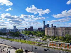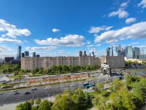 Высокий 11 этаж с прекрасными видами на Москву Сити и Триумфальную арку.