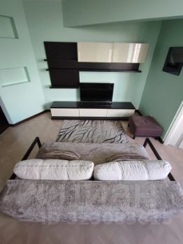 В квартире есть вся необходимая мебель и техника: Кухонный гарнитур, два Шкафа-купе в прихожей и в спальне, Диван раскладывающийся в гостиной, Кровать двухспальная в комнате, телевизор, сма, посудомоечная, кондиционер.