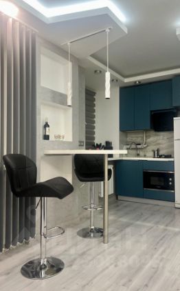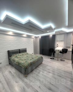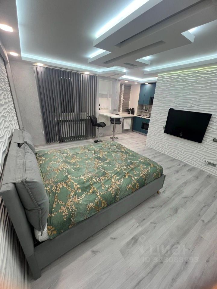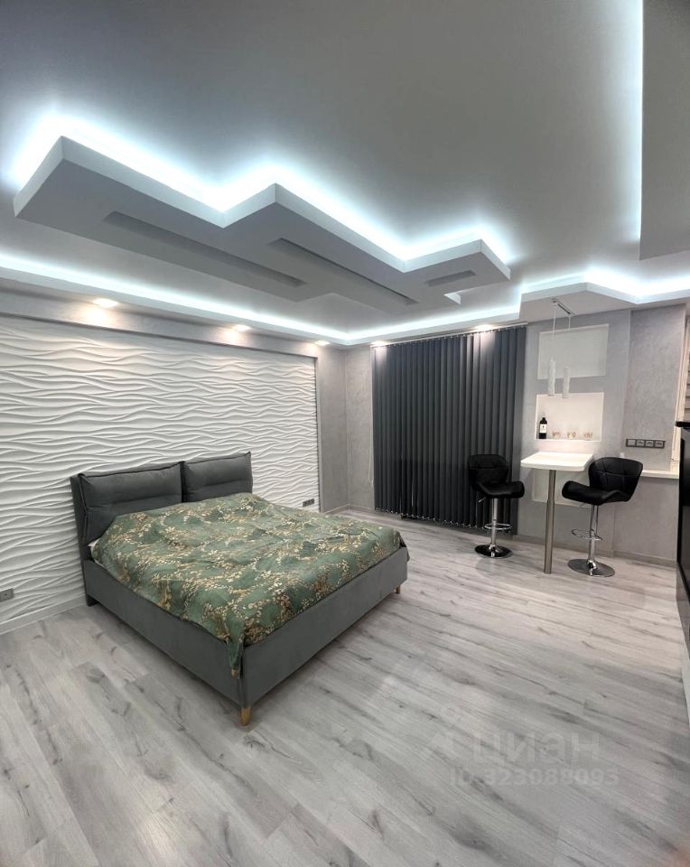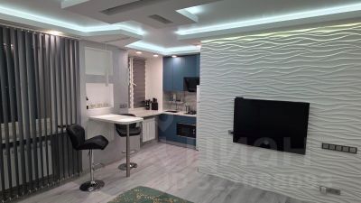 В квартире сделан дизайнерский ремонт, что придаёт ей современный и стильный вид. В комнате и на кухне есть вся необходимая мебель для комфортного проживания. Квартира полностью укомплектована техникой: кондиционер, холодильник, телевизор и стиральная машина. Санузел совмещённый, оборудован ванной, что делает его идеальным для отдыха после долгого дня. Окна выходят на улицу, наполняя пространство естественным светом. Интернет подключён, что позволяет всегда оставаться на связи.