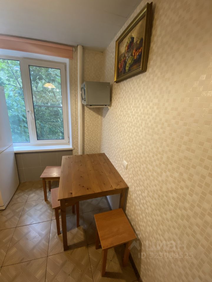 Квартира расположена на третьем этаже девятиэтажного блочного дома. Общая площадь составляет 32 кв. м, из которых 21 кв. м приходится на жилую зону и 6 кв. м — на кухню. Высота потолков — 2,64 метра, что создаёт ощущение простора. Окна выходят во двор, что обеспечивает тишину и спокойствие.