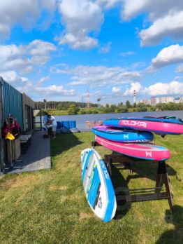 - На берегу реки уже работают Сап-центр (SUP), кофейня для жителей и гостей