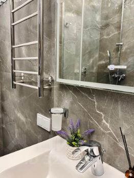 Ванная комната совмещенная с туалетом. Второй туалет отдельный со стиральной машиной и водонагревателями.