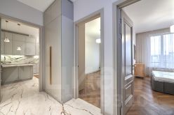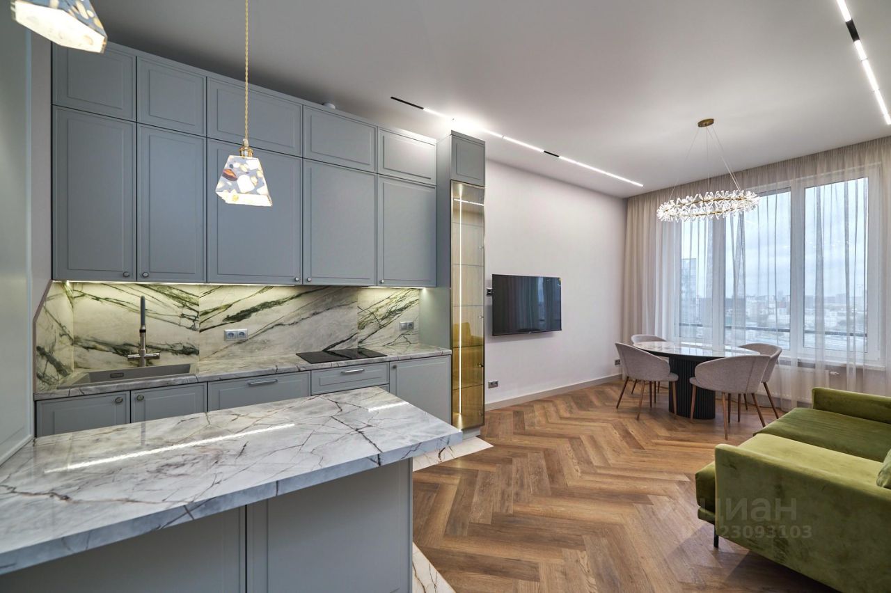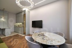 Уютная, меблирована (кроме одной комнаты) и укомплектована всей необходимой для комфортного проживания техникой: посудомоечная, стиральная и сушильная машины, варочная панель и духовой шкаф, СВЧ-печь, кондиционеры, телевизор.