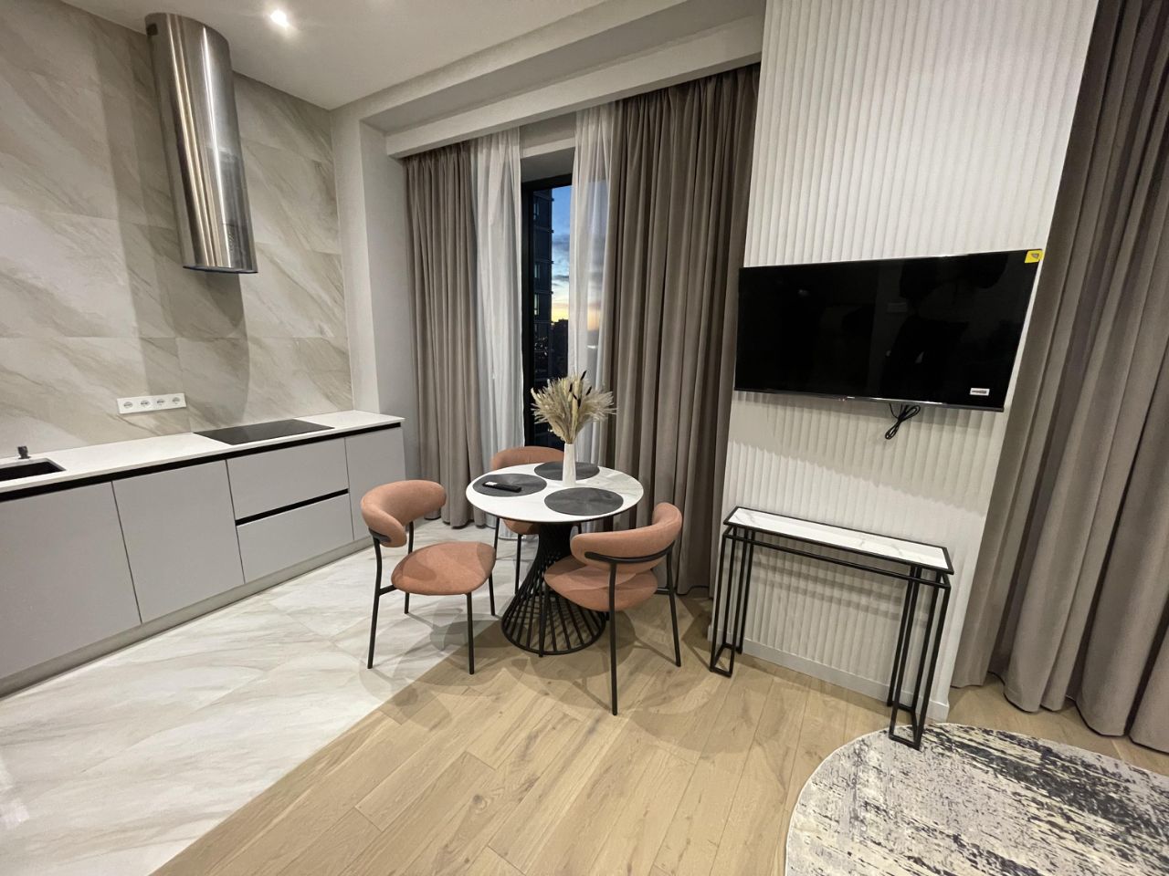Сдаётся элегантная квартира с дизайнерским ремонтом на 22-м этаже. Панорамное остекление обеспечивает потрясающий вид на город и обилие естественного света.