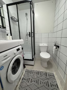 В квартире сделан свежий ремонт, создающий приятную атмосферу для проживания. Пространство студии оборудовано необходимой мебелью, что позволяет сразу заехать и жить без забот. Из окон открывается вид на улицу. Для вашего удобства в квартире есть вся необходимая техника: чайник, варочная панель, холодильник, телевизор, стиральная машина, микроволновая печь. Санузел совмещенный, оборудован современной душевой кабиной.