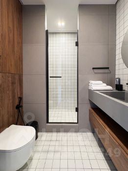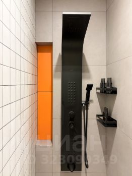 Ванная комната: оснащена душевая, зеркало с подсветкой над раковиной и тумба.