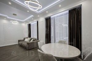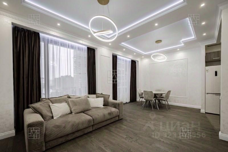 Предлагается в аренду уютная светлая квартира с дизайнерским ремонтом в новом жилом комплексе " Прайм парк". Функциональной планировкой предусмотрено: Просторная кухня-гостиная( оборудована всей необходимой бытовой техникой), спальня со своей гардеробной и санузлом(ванна, душевая кабина), небольшая гардеробная при входе, гостевой санузел. Панорамные окна с красивым видом из окна во двор с танцующим фонтаном.