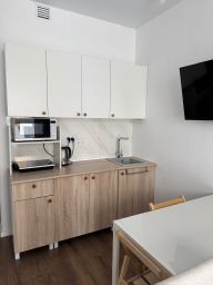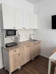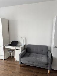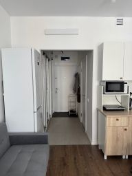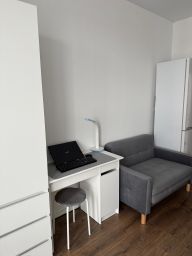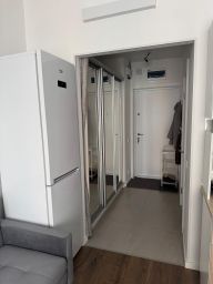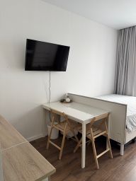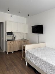 Студия укомплектована для удобной жизни. Много места для хранения, а так же есть отдельный диван и кровать.