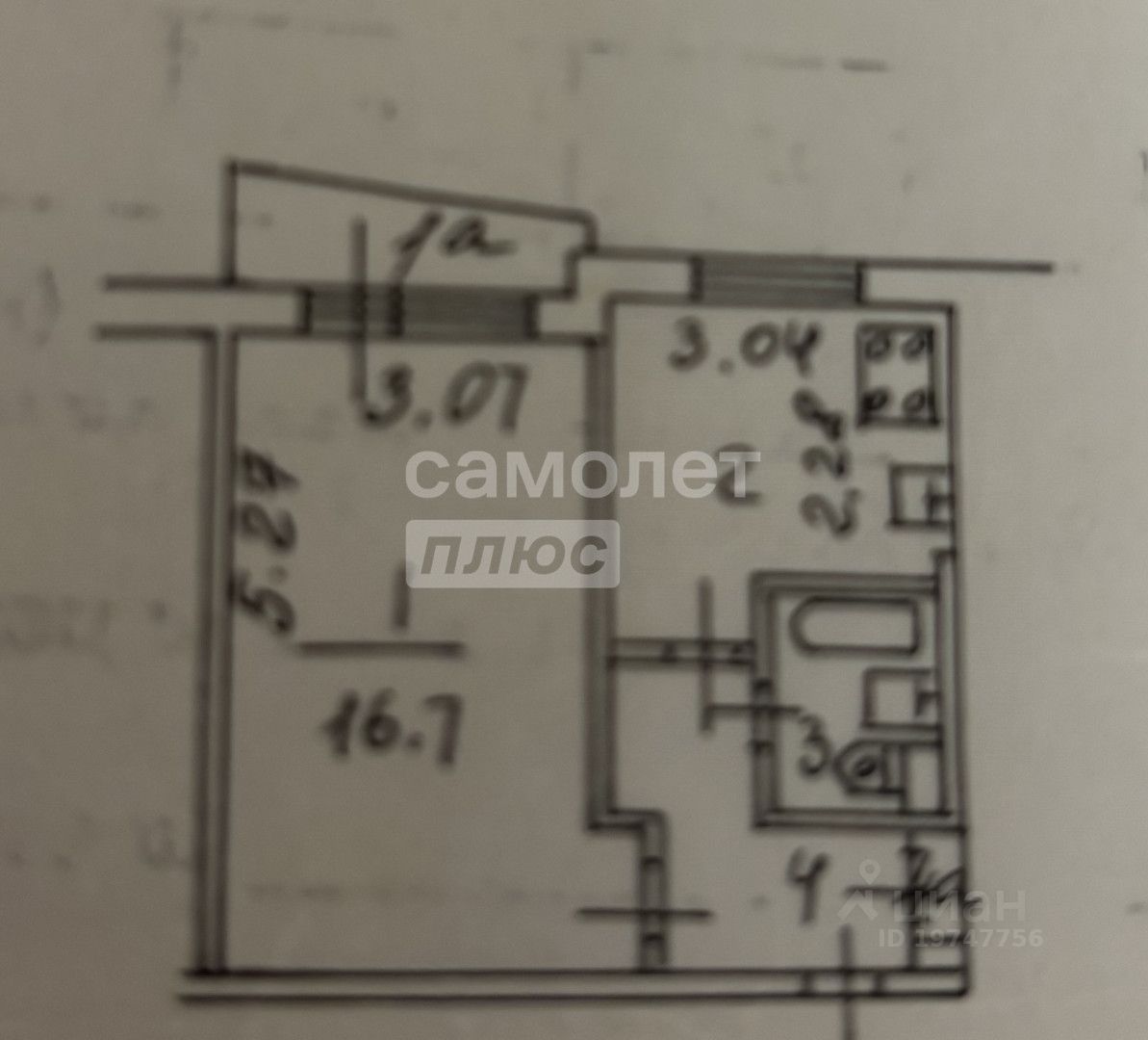 Площадь комнаты 16,7 кв. м, кухни 7 кв. м, санузел совмещен, в коридоре несколько зон для хранения.