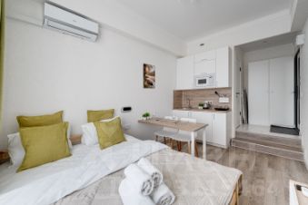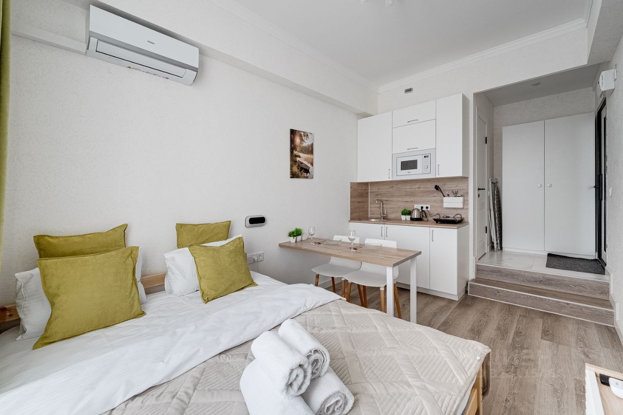Квартира-студия подходит для проживания 1-2 гостей.