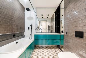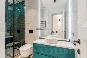 В апартаменте два санузла, один из них с ванной, второй с душевой кабиной, установлена стиральная машина со встроенной сушилкой Bosh.