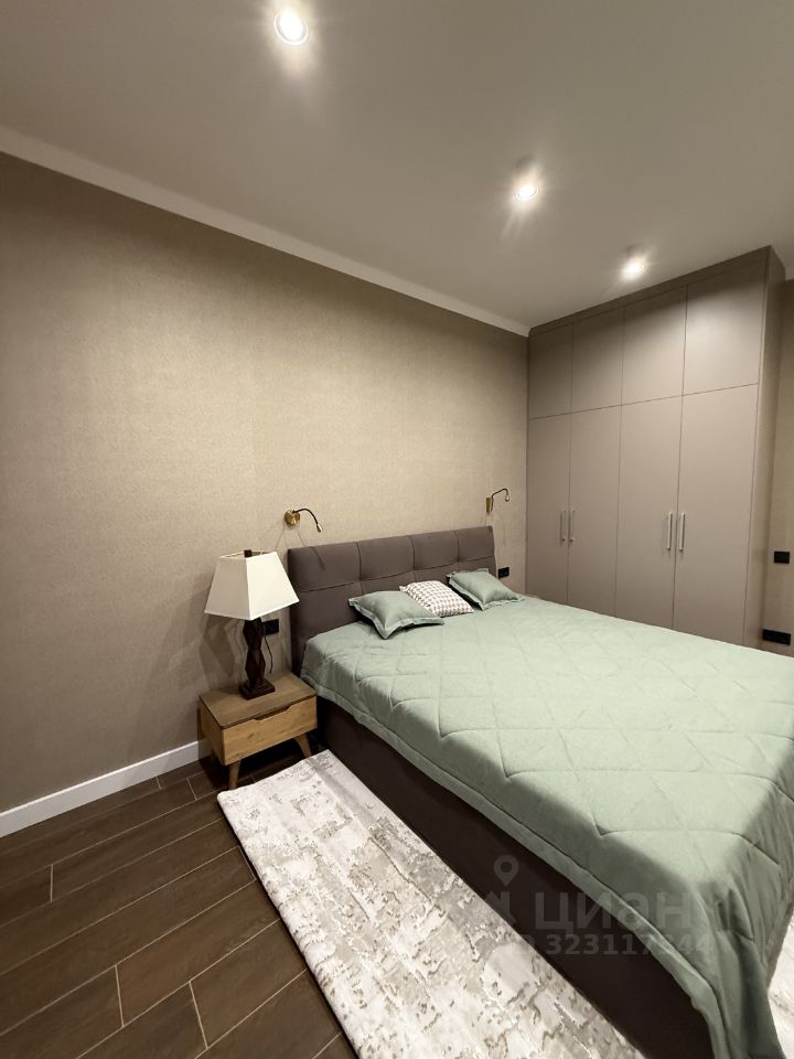 Спальня с 2-х спальней кроватью на 200*160 см. ( имеет подъёмный механизм для хранения вещей) и шкаф . Кухня- гостиная с бытовой техникой (посудомоечная машина , холодильник, вытяжка, духовой шкаф, плита) , также имеется раскладной диван и обеденный стол . Санузел с душевой кабиной . В квартире имеется кондиционер в каждой комнате.