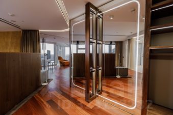 Просторные видовые апартаменты в одной из самых престижных башен МоскваСити. Из панорамных окон открывается захватывающая панорама мегаполиса — виды на другие небоскрёбы комплекса, городские ландшафты и дальние перспективы столицы.