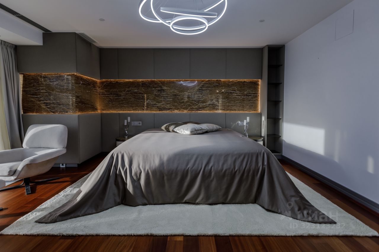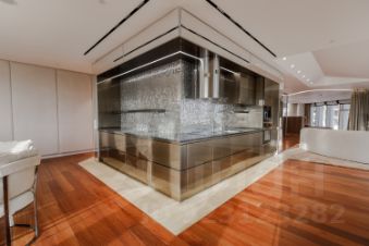 Апартаменты выполнены в современном стиле с использованием высококачественных материалов. Продуманная цветовая гамма и лаконичные формы создают атмосферу сдержанной роскоши и комфорта. Высокие потолки и панорамное остекление визуально увеличивают пространство и наполняют его естественным светом.