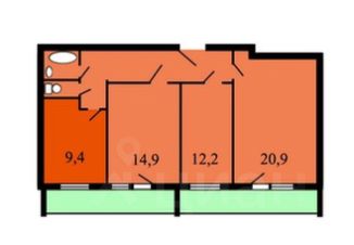 Общая площадь 73,1 кв.м, комнаты изолированные: 20,9 кв.м, 12,2 кв.ми и 14,9 кв.м, просторная кухня 9,4 кв.м. С/узел раздельный.