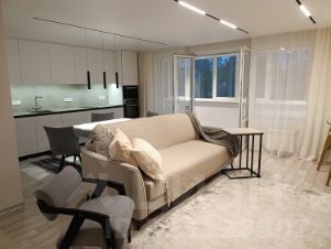 Квартира чистая и уютная. Изолированная спальня, гостиная объединена с кухней, санузел с душевой. Квартира оборудована хорошей мебелью и высококачественной бытовой техникой (всё новое). Много мест для хранения. Кондиционеры в каждой комнате. Две лоджии. Гардеробная. Все помещения с теплыми полами. Окна во двор. Комфортный 4-й этаж.
