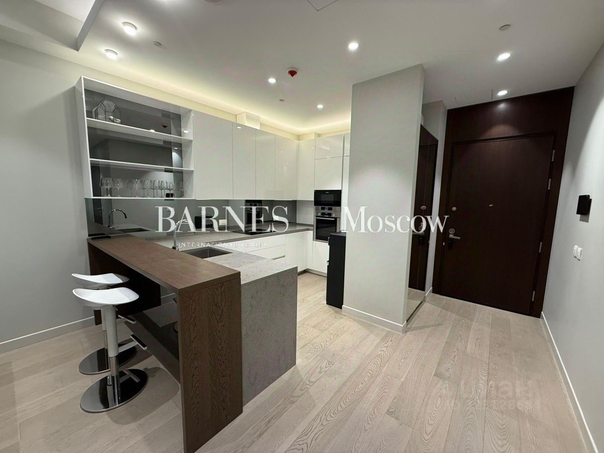 В апартаменте выполнена современная и стильная отделка. Функциональное планировочное решение: просторная гостиная с зоной кухни, спальня, гардеробная, санузел.
