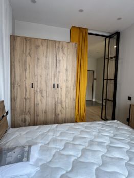 Сдаётся просторная однокомнатная квартира с дизайнерским ремонтом в современном доме 2023 года постройки. Общая площадь квартиры составляет 45 кв. м, из которых 20 кв. м занимают жилые помещения и 16 кв. м — кухня. Квартира находится на 19 этаже 26-этажного монолитного дома, высота потолков — 3.1 метра.