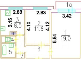 • общая площадь 50 кв.м., изолированные комнаты 19 + 12 кв.м. , кухня 8.5 кв.м., остекленный балкон, раздельный санузел.