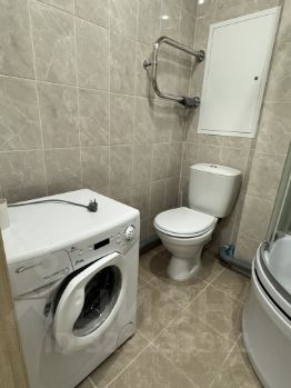 Квартира оформлена в светлых тонах и оборудована всем необходимым для комфортного проживания. Пространство студии грамотно организовано: в комнате и на кухне есть мебель, а в ванной установлена душевая кабина. Из окон открывается вид на тихий двор, поэтому в квартире всегда будет спокойная атмосфера. Для вашего удобства в квартире есть холодильник, телевизор и стиральная машина, а также доступ к интернету.