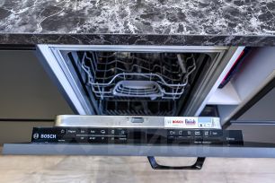 В квартире есть всё необходимое для комфортного проживания. В просторной кухне установлены современная мебель и техника, включая посудомоечную машину и холодильник. В комнатах тоже есть современная мебель. кровать поставят . Санузел совмещённый, очень просторный и светлый .