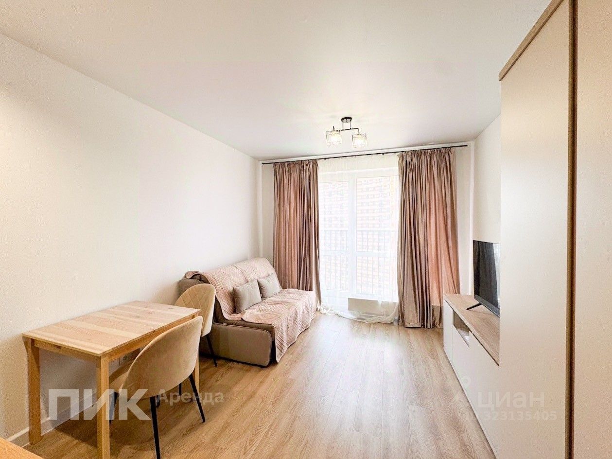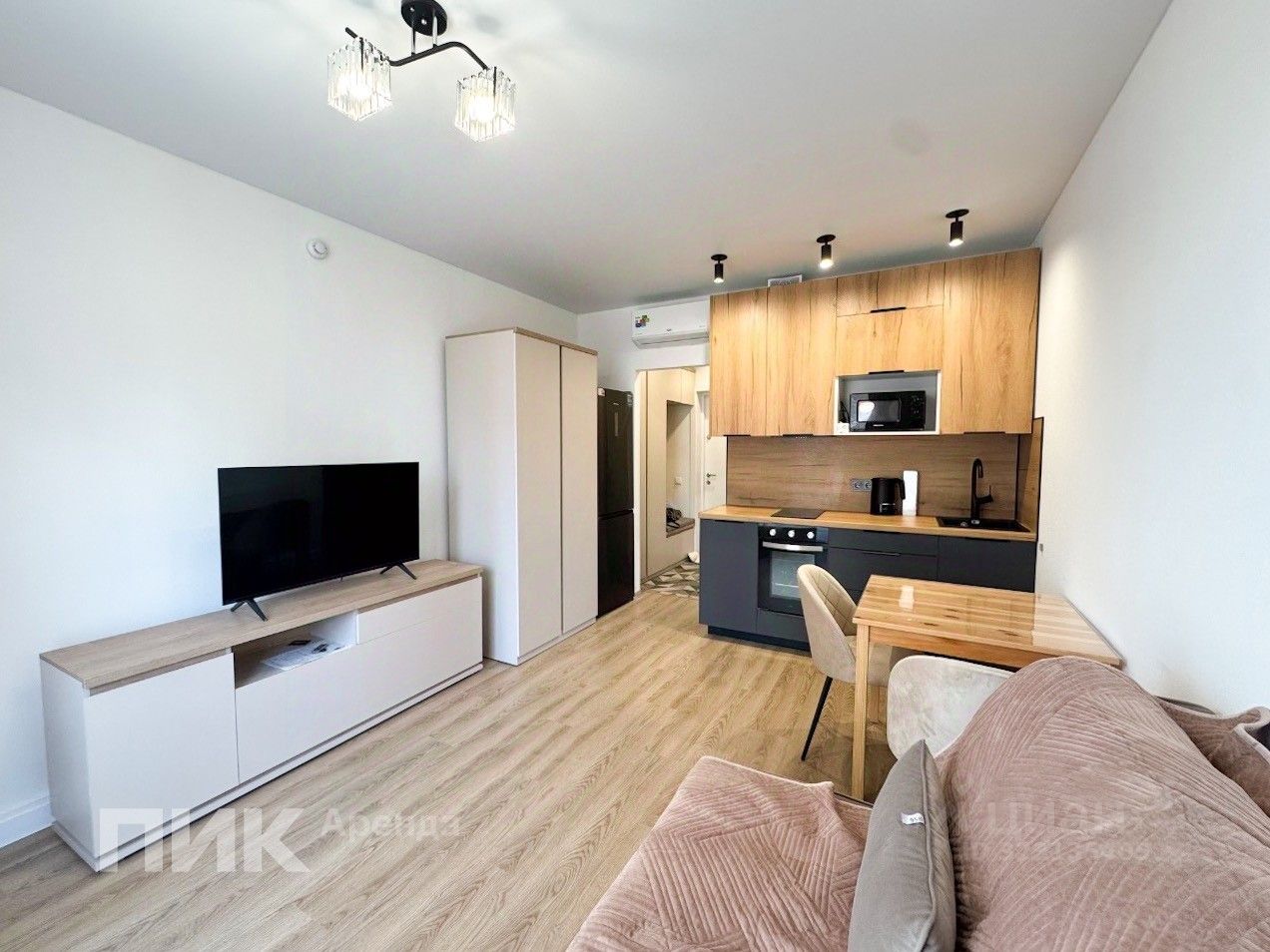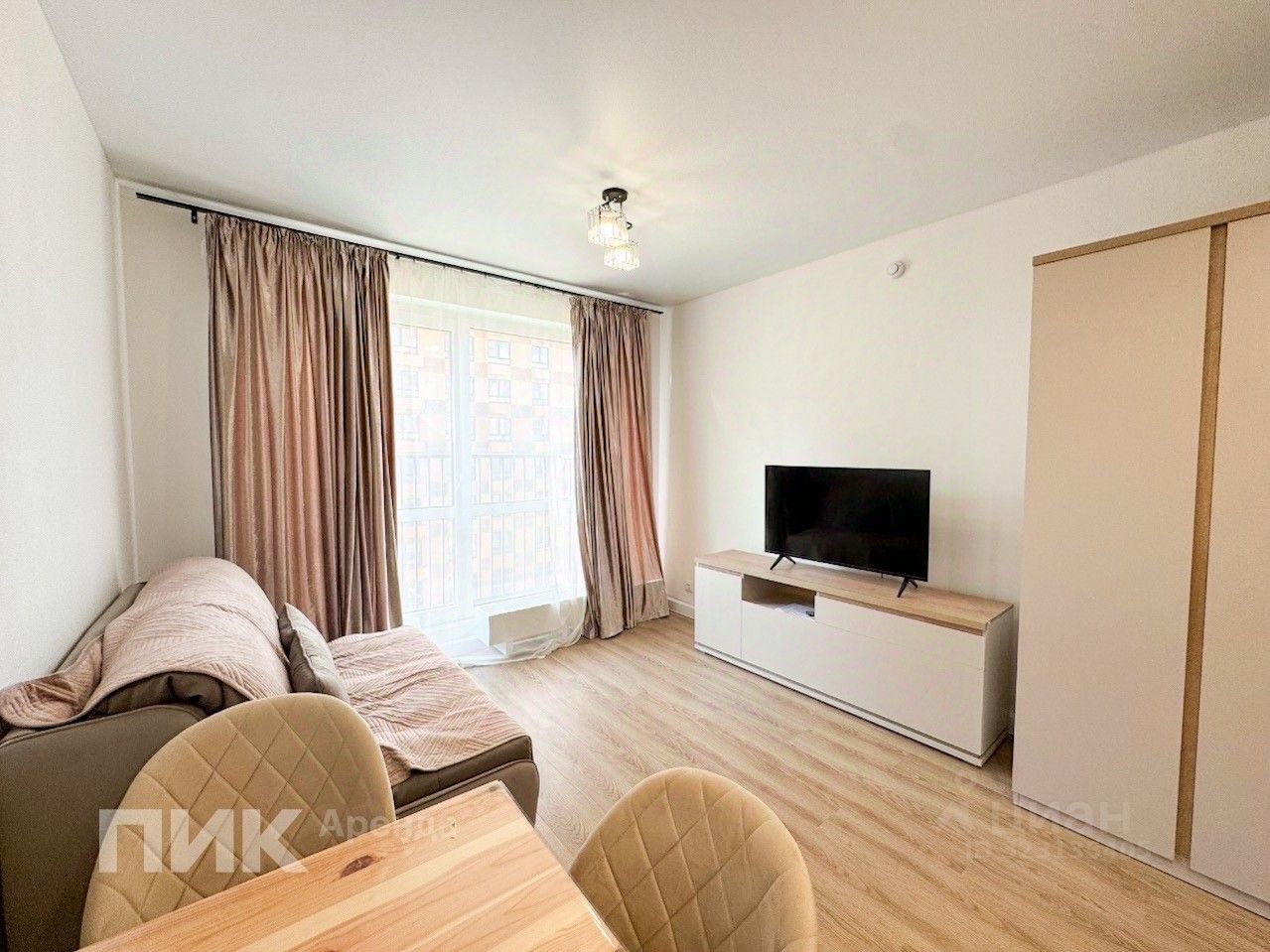 Сдаётся светлая квартира-студия с евроремонтом, балконом и совмещённым санузлом в ЖК Матвеевский Парк.
