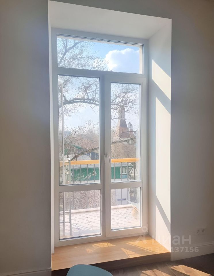 В гостиной: панорамные окна в пол с выходом на балкон, удобный раскладной диван, обеденная зона. Красивый вид из окна в сторону Симоновского монастыря.