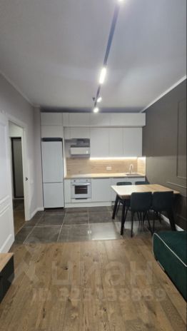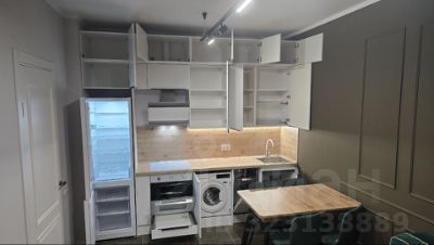 - Встроенная кухня с атмосферной подсветкой (холодильник, варочная панель на 4 конфорки, духовой шкаф, вытяжка, встроенные посудомоечная и стиральная машина).