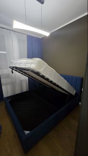 - В спальне установлена двуспальная кровать с местом для хранения и максимально большой шкаф до вещей.