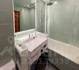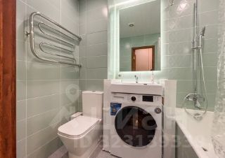 Ванная после ремонта, тропический душ, большое зеркало с подсветкой, новая стиральная машина.