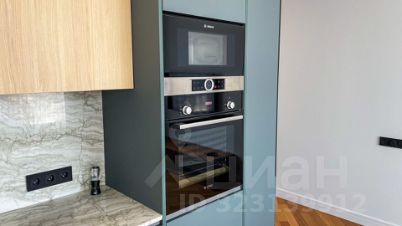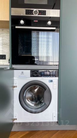 Квартира оснащена всей необходимой техникой премиальных европейских брендов (стирально-сушильная машина, посудомойка, холодильник, микроволновка, духовка, индукционная варочная панель).