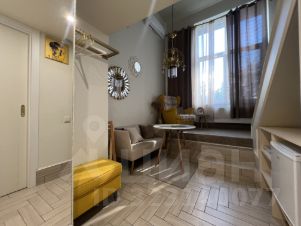 Студия полностью меблирована и готова к проживанию. В комнате и на кухне есть вся необходимая мебель. Из техники — кондиционер, холодильник, телевизор и стиральная машина. Санузел совмещённый, оборудован душевой кабиной. Окна выходят во двор, что обеспечивает тишину и спокойствие. Для вашего удобства в доме есть мусоропровод.