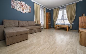 Квартира с общей площадью 72,1 кв. м. Квартира расположена на 4 этаже 13-этажного дома. Жилая площадь составляет 43,4 кв. м, а кухня — 11,2 кв. м.