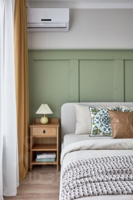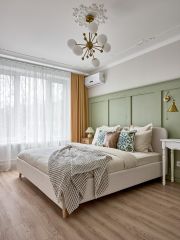 Просторная мебелированная спальня с туалетным столиком, гардеробной и кондиционером.