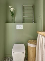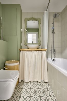 Кухня полностью оснащена современной техникой Bosch, включая посудомоечную машину. Санузел совмещённый, выполнен в едином стиле с остальной квартирой, имеется стиральная машина.