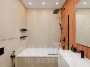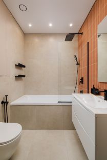 Совмещённый с/у 3,4 м² — с ванной и мягким сценарием освещения, оформлен плиткой Kerama Marazzi, создающей уютную атмосферу для отдыха