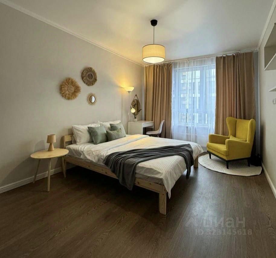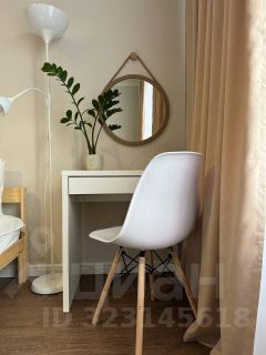 В комнате установлена современная мебель, обеспечивающая комфортное проживание. Есть гардеробная, много мест для хранения вещей.