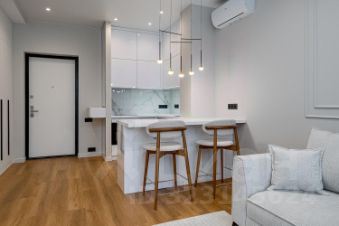 Общая площадь — 45 кв. м, жилая — 30 кв. м, кухня — 10 кв. м. Квартира расположена на 6-м этаже 42-этажного здания с высотой потолков 3 метра. До метро "Крымская" — 19 минут пешком.
