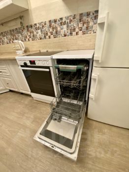 Бытовая техника: стиральная машина, холодильник, духовой шкаф, варочная панель и вытяжка, электрический чайник, кондиционер.