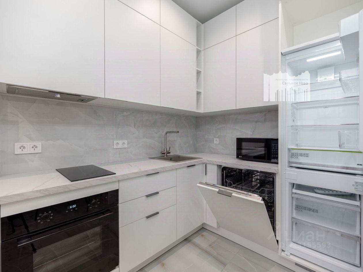 - функциональная кухня, оборудованная встроенной техникой: духовка, варочная панель, вытяжка, холодильник, посудомоечная машина, микроволновая печь, подогрев пола