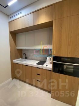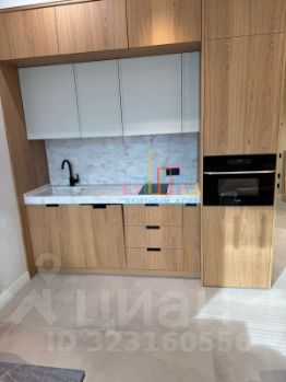 - Kуxня-гостиная с встроенной кухней и гостевой зоной с раскладным диваном.