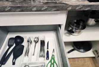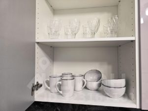 • Отдельная кухня с встроенной техникой (индукционная варочная панель, встроенный духовой шкаф, встроенная микроволновая печь, посудомоечная машина, холодильник) Оснащена необходимой посудой.