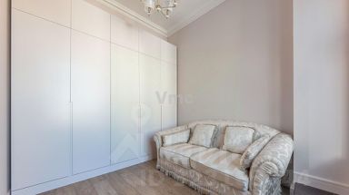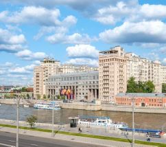 Есть вместительные шкафы для хранения вещей, ванная комната с большим видовым окном, душевой кабиной и джакузи. Окна ориентированы на две стороны: прекрасные виды на Кремль, Храм Христа Спасителя и памятник Петру I. Во всей квартиры панорамное застекление. Новый современный ремонт c использованием качественных материалов (натуральное дерево, мрамор). Заменены все инженерные системы