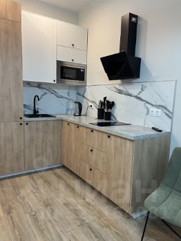 В квартире выполнен стильный дизайнерский ремонт. Пространство студии обставлено современной мебелью и оснащено всей необходимой техникой: кондиционер, холодильник, посудомоечная и стиральная машины, а также телевизор. На кухне есть всё, что нужно для комфортного проживания. Совмещенный санузел оборудован душевой кабиной, что добавляет удобства.