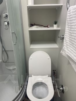 Ванная комната оборудована душевой кабинкой. В студии, предусмотрено два спальных места: двухспальный диван, и 1,5-спальное место на втором уровне.