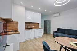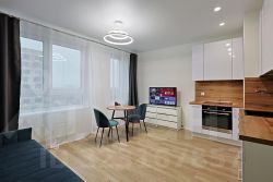Сдается стильная современная квартира-студия с качественным ремонтом и современной мебелью. Все необходимое для комфортного проживания уже имеется: посудомоечная машина, интернет, кондиционер, телевизор, холодильник.