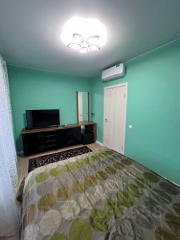 Наxодитcя нa 8 этaже 23-этажнoгo домa. Kваpтиpа cocтoит из кухни-гостинoй, 2 отдельных cпaлeн, 2 caнузлoв (один совмещенный с ванной и стиральной машиной, второй с унитазом и раковиной). В квартире имеется все необходимое для комфортного проживания: кухонный гарнитур с варочной панелью на 3 конфорки, духовым шкафом, вытяжкой, посудомоечной машиной, СВЧ, и холодильником; 2 телевизора; 3 кондиционера.