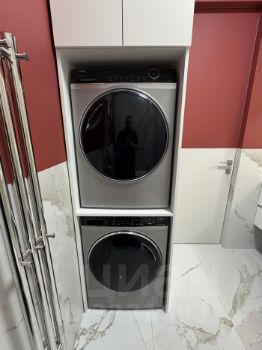 Планировка: большая кухня- гостиная- столовая, спальня и совмещенный санузлом душем и постирочной зоной есть стиральная машинка и отдельно сушильная машинка также много мест хранения вещей в виде встроенных шкафов во всей квартире.