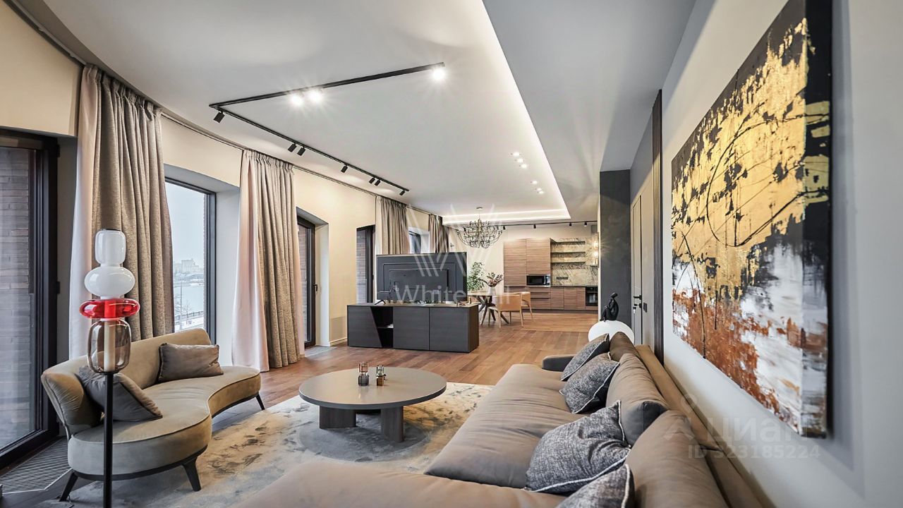 Бонус партнёрам 50%. Просторная квартира с 2-мя спальнями площадью 150 м² расположена на 3 этаже комплекса премиум-класса у реки. Выполнен дизайнерский ремонт в современном стиле. Интерьер оформлен в теплых песочных оттенках. Квартира меблирована и оснащена бытовой техникой Kuppersberg.