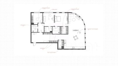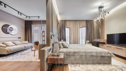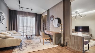 В квартире спланирована кухня-гостиная с уютной зоной отдыха и эркерными окнами "в пол", 2 спальни, объединённые единым пространством и зонированые перегородкой, 2 санузла с душевыми кабинами и гардеробная. Из окон квартиры открывается панорамный вид на набережную. В стоимость входит 1 машиноместо.